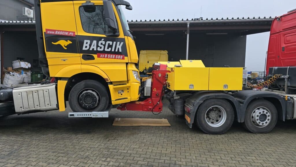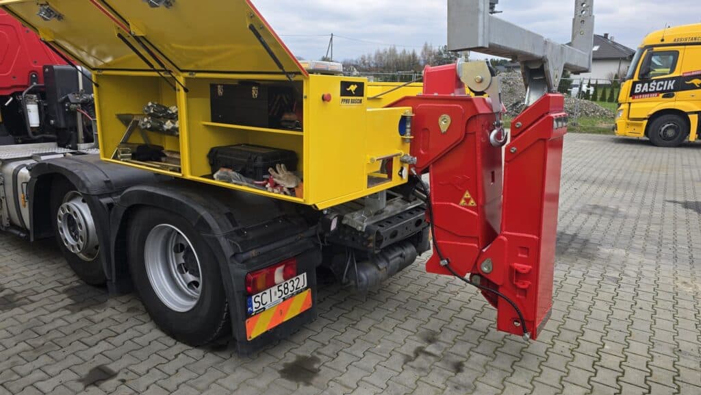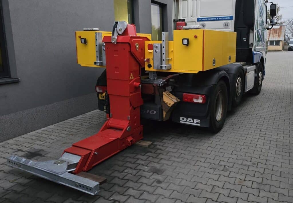 KANGUR LIFT är en modern påbyggnad avsedd för montering på en dragbilens sadel, framtagen för snabb och säker vägassistans. Den möjliggör bogsering av fordon som varit med om en olycka, är skadade eller av andra skäl inte kan förflytta sig.